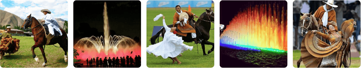 O circuito Mágico das Águas é um vislumbre para os olhos, além das 13 fontes de águas luminosas, poderemos assistir a um espetáculo de imagem, com laser, som e Luz que são misturadas para uma grande apresentação nas águas dançantes. Todo este parque, com belos espaços verdes possui mais de 135 mil metros quadrados e atraem diariamente muitos visitantes no inverno e verão Limenho. Após o espetáculo das fontes, seguiremos para o restaurante para apresentação de danças com cavalos de Pasos, com direito a muita música e danças do folclóre Peruano, depois de tudo isso nada melhor que desfrutar de um Buffet com muita variedade do melhor da comida Peruana.